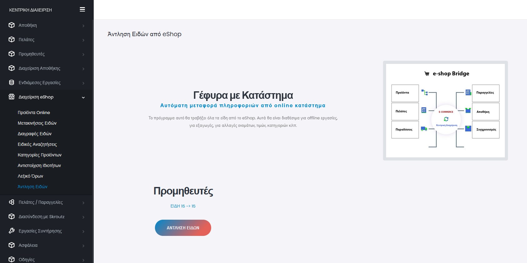 Σύνδεση-γέφυρα με προγράμματα πελατών, προμηθευτών, γενικής λογιστικής και eshop.