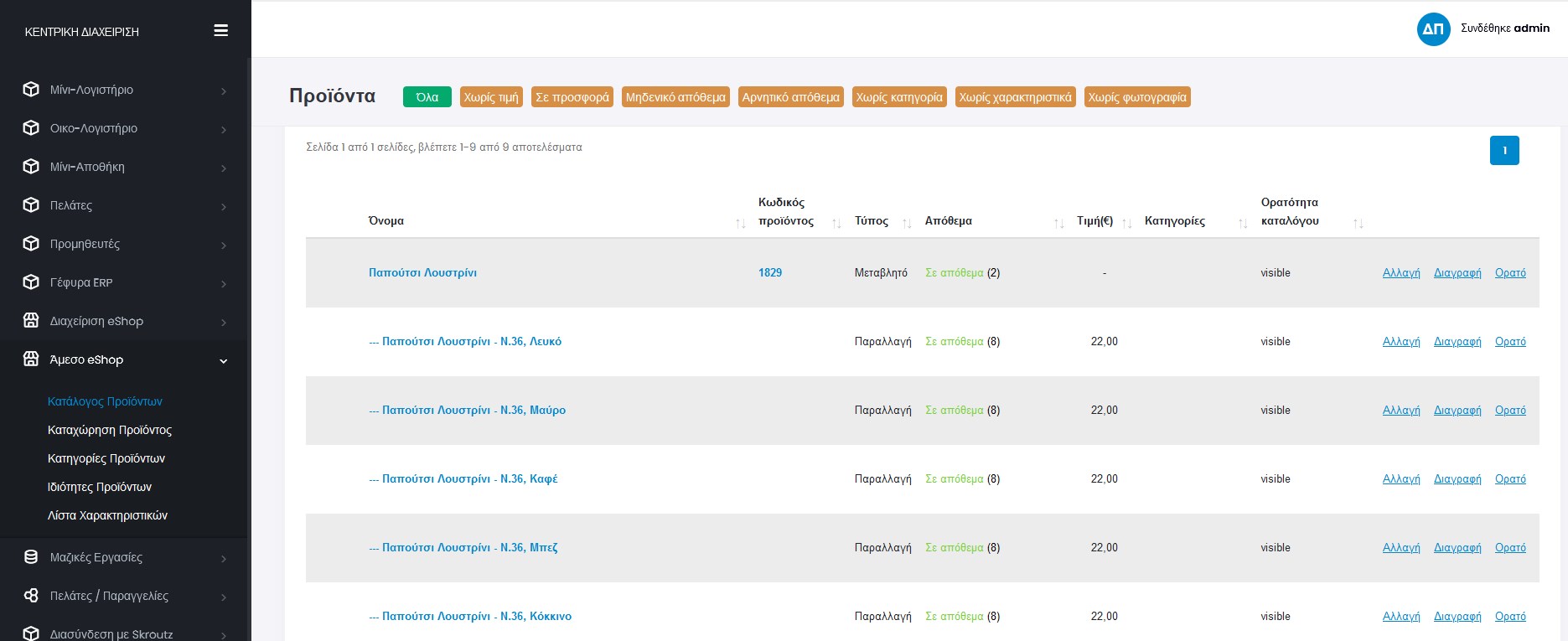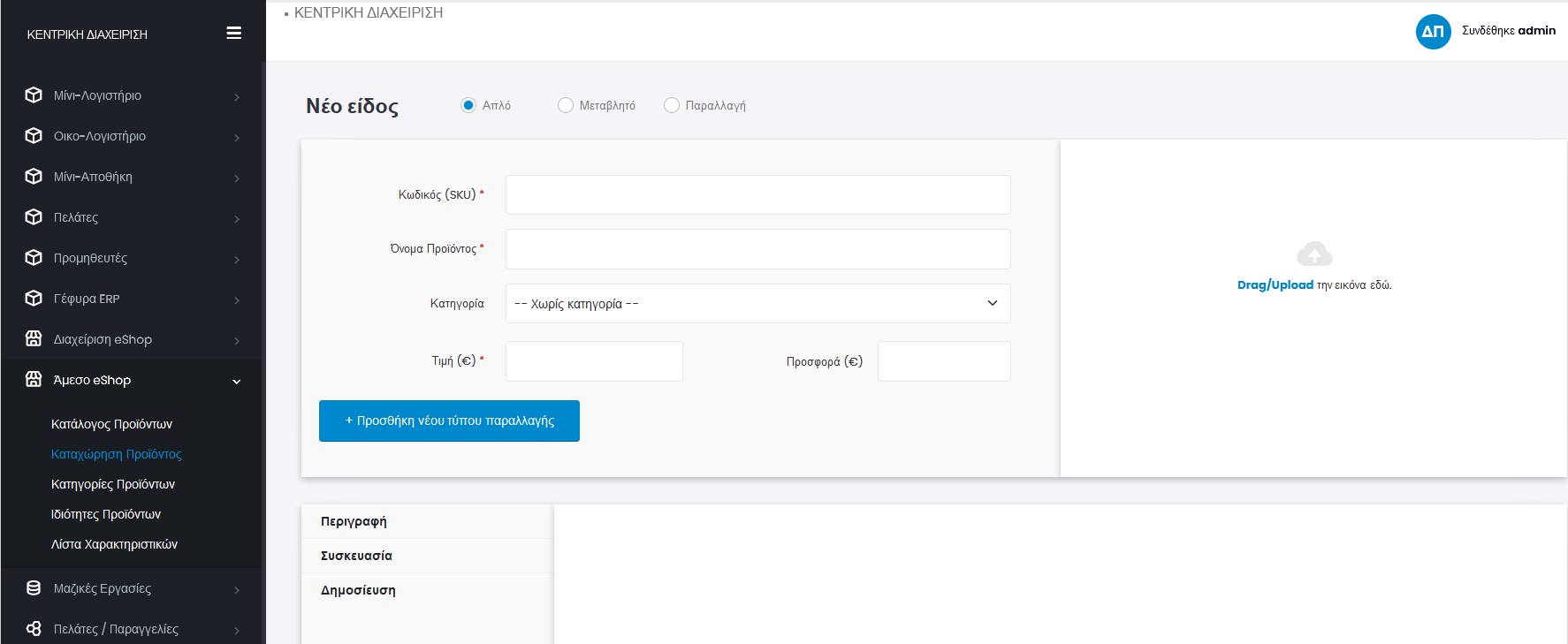 - Μαζική εισαγωγή επιπρόσθετων πληροφορικών (τιμή, βάρος, απόθεμα, φωτογραφίες)