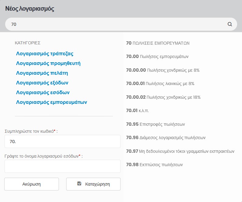 Ενσωματωμένο το επίσημο Ελληνικό Γενικό Λογιστικό Σχέδιο δίνει πληρότητα και ταχύτητα στην εισαγωγή νέων λογαριασμών χωρις αναζητησεις. Οι υποδείξεις δεν είναι υποχρεωτικές, ούτε είναι υποχρεωτικές μακροσεκελείς λογιστικές διαδικασίες, αν και υποστηρίζονται. Οι λογιστικές πρακτικές ενσωματώνονται ως πρότυπα και μπορείτε να δημιουργήσετε τα δικά σας πρότυπα που θα επιταχύνουν την καταγραφή των συναλλαγών σας, ακριβώς όπως γίνεται και με τα πρότυπα των τραπεζών.